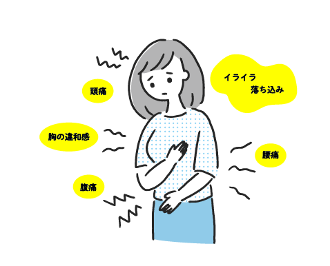 イライラしやすい、胸が張る、生理前から痛みが強くなる。